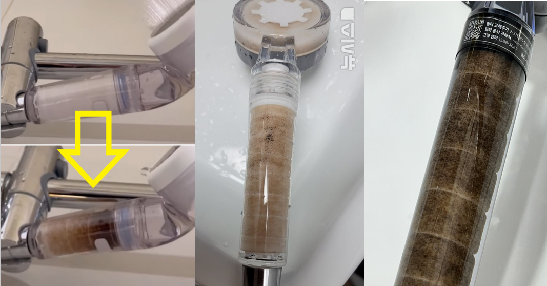 샤워기 필터를 사용해보면 처음에는 하얗던 필터가 며칠만에 갈색 또는 검은색으로 변하는 경우가 많습니다.